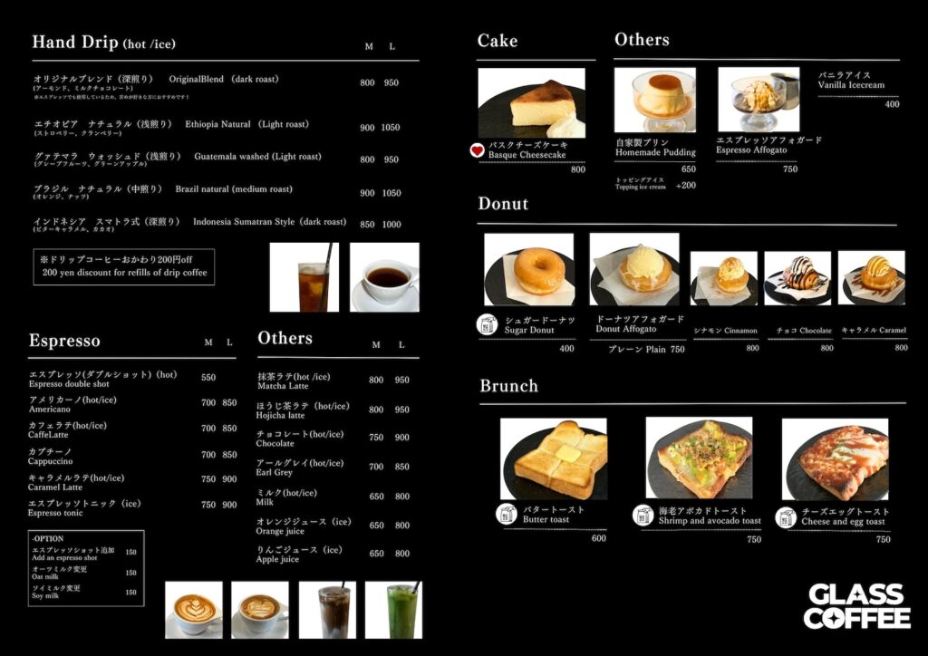 コーヒーはハンドドリップで一杯ずつ丁寧に抽出されています。浅煎りから深煎りまで取り揃っており、インドネシア・スマトラ式深煎りがおすすめ。オリジナルブレンドは深煎りながらも飲みやすさが特徴的です。 抹茶ラテやホットチョコレートなどのドリンクもラインナップに含まれており、コーヒーが苦手な人にも選択肢が多くあります。フードはドーナツやケーキ、アフォガードなどバリエーションも豊か。